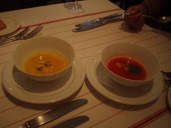 お次はスープ 左はりかちゃんが頼んだ かぼちゃポタージュ私は